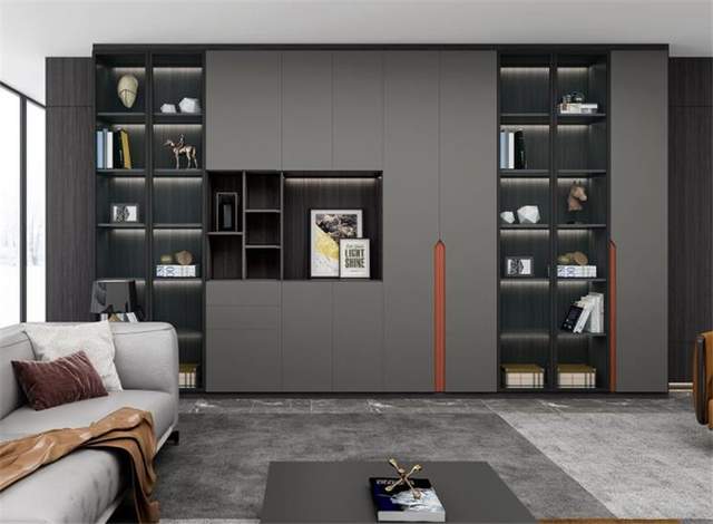 頂天立地的貼墻客廳柜,半開放式的設(shè)計(jì)增加了柜體的收納和展示空間。采用年輕人喜愛的高級灰色調(diào),整體氛圍高度藝術(shù)化,沒有過多的驚艷元素,冷靜的空間氣質(zhì)帶來大氣的視覺享受。